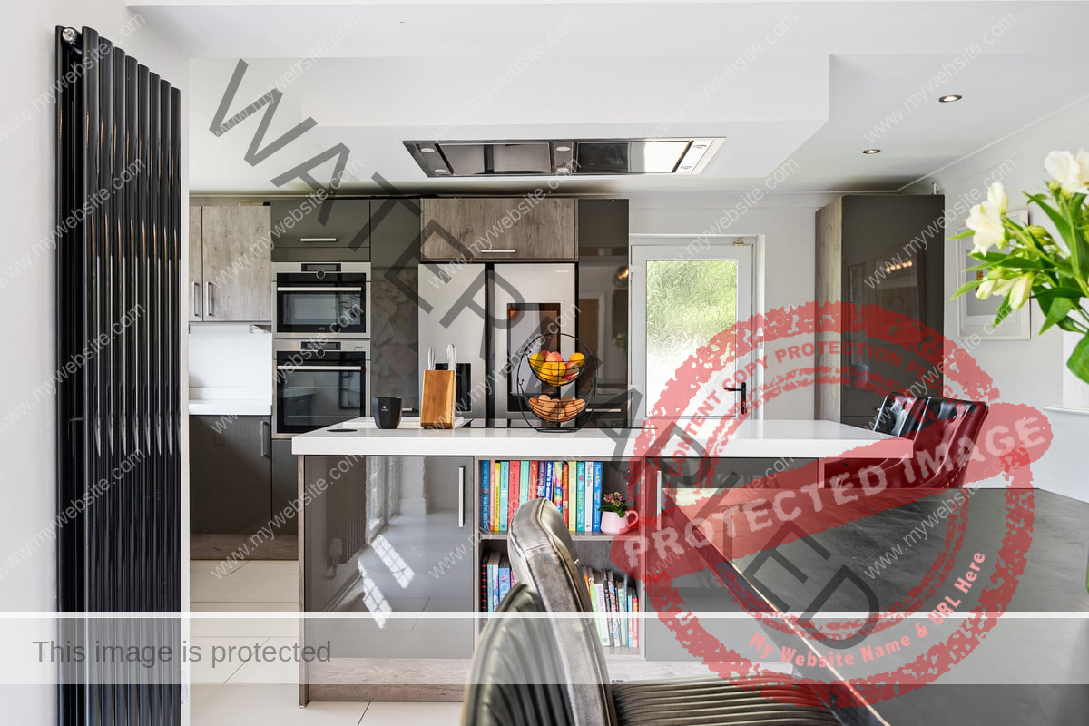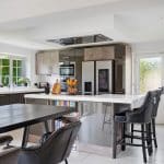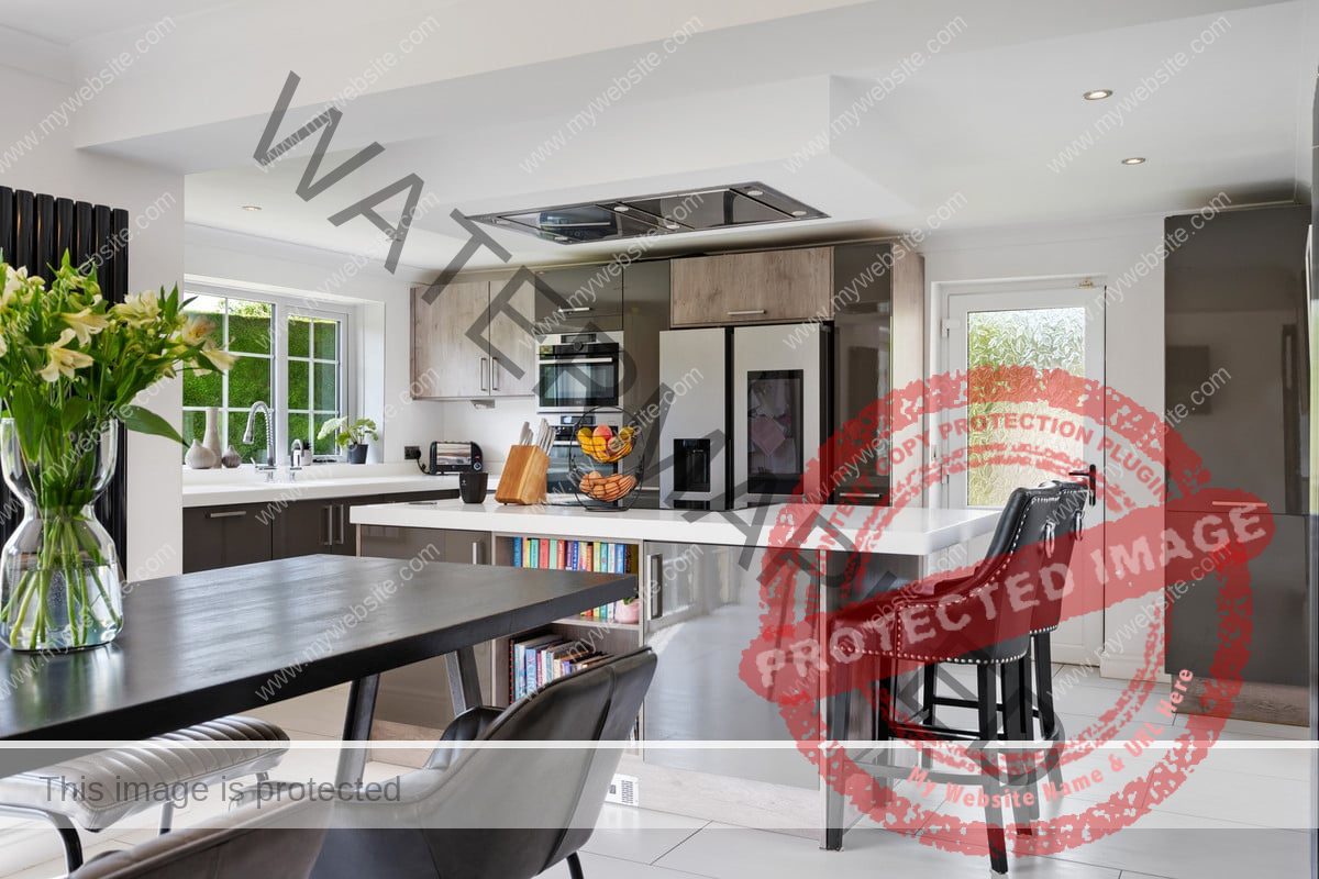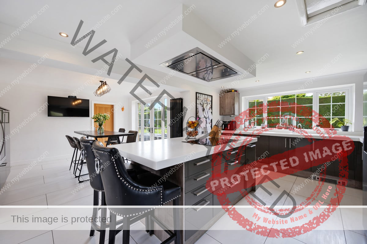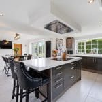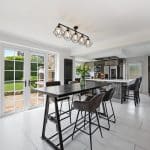 The property is accessed through a modern entrance hallway with tiled flooring, storage cupboard and guest W.C. The open plan dining kitchen is a fantastic space with tiled flooring, a central island, complimenting wall and base units, Corian worktops, integrated AEG oven and microwave, AEG induction hob, Neff dishwasher, wine fridge, waste disposal, instant hot water tap, a cupboard housing the gas central heating boiler and double doors leading to the paved patio and garden.