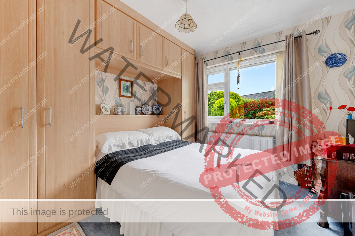 The bungalow is accessed via a spacious entrance hallway, with oak flooring, which leads to a sitting room with a bay window overlooking the front garden, three bedrooms (all with fitted furniture) and a generous bathroom with a walk in shower.