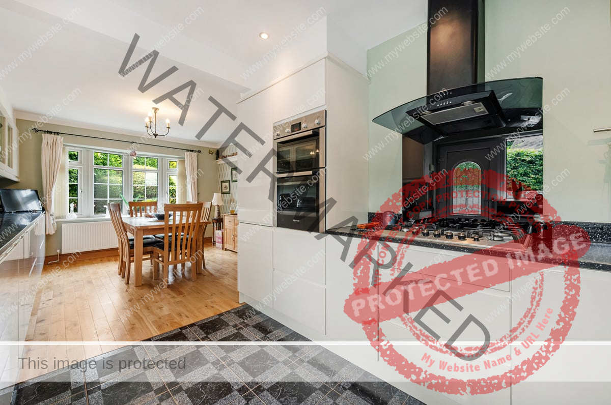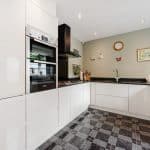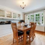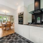 A real feature of this property is the open plan kitchen/dining room. The kitchen area has been fitted with modern cream gloss units with complimenting black worktops and a range of Bosch integrated appliances including a five ring gas hob, double oven, fridge/freezer and dishwasher. The dining area has a continuation of matching kitchen units and a bay window overlooking the front garden.