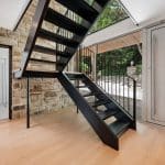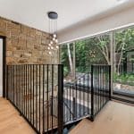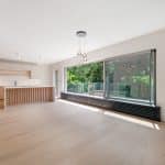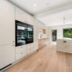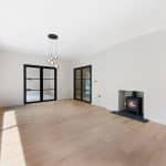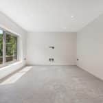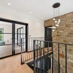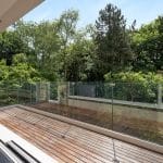 A bespoke open tread staircase leads to the first floor where you’ll find two bedrooms, guest W.C. and a set of Crittall style doors which lead to the most magnificent open plan kitchen/diner with a log burner, Quartz worktops, Quooker tap, an induction hob with down draught extractor, a drinks fridge and a range of high quality integrated appliances including a fridge, freezer, two ovens and two microwaves. A real feature of this space is the full height sliding doors and a door to the fully glazed balcony which overlooks the south facing rear garden and woodland beyond. Further double sliding pocket doors lead to a lounge which also overlooks the rear garden.