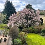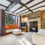 Pear Tree Cottage offers a blend of charm and modern living with its two bedrooms, featuring captivating river vistas, a stone terrace accessible through French doors and a garden with a variety of trees and plants. It benefits from wood-effect PVC double-glazed windows and doors enhancing both its aesthetic and functionality. To the ground floor the sitting room exudes character with wooden beams, a stone fireplace with a wood-burning stove and a window seat that overlooks the garden and river. A breakfast kitchen with wooden countertops, a freestanding range style cooker and a Belfast sink are complemented by exposed beams and tiled floors. The kitchen opens to a stone patio through French doors, with a utility room adjacent equipped for laundry and housing the heating system. The first floor houses two bedrooms, one of which commands splendid views of the river and Wetherby Bridge, adorned with a window seat and an original fireplace. The bathroom features a double shower, a bath and tasteful tiling for a modern yet characterful finish.