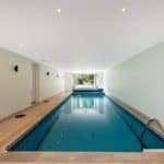 The lower ground floor offers a versatile space with an impressive reception/garden room, three bedrooms, three bathrooms, a gym and an indoor heated swimming pool with a steam room, shower room and changing facilities.