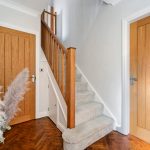 To the first floor are three double bedrooms, one with a modern ensuite shower room and a stylish house bathroom with skylight window.