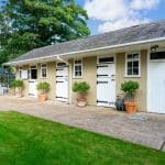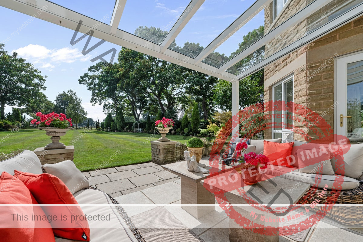 To the immediate rear of the house is extensive terracing with a BBQ and raised planters and there is a remote-controlled sun blind that can cover some of the patio area. The patio area looks over the manicured extensive lawns and well stocked borders, all which back and side onto open farmland. There is a Mediterranean style garden to the west side which has a central terracing area, four mature olive trees and well stocked flower borders. There is a stable block with three stable doors presently used as a gym and art room, additional stable and gardeners store, greenhouse and covered area. The outside area boasts extensive lighting and illumination.