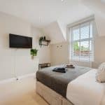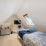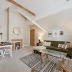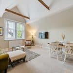 The apartment has the advantage of a private hallway/lobby with a useful storage cupboard and Velux window and an archway leading to an occasional room, currently used as a study/bedroom three, with a further Velux window with a built in blind. The gas central heating boiler is housed in a cupboard in this room.