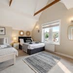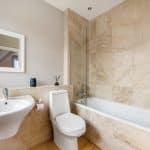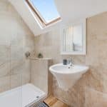 There are two generous double bedrooms, both with vaulted ceilings and sash style windows. One of the bedrooms has the benefit of a modern ensuite bathroom with travertine tiling and there is an additional shower room with a walk in shower and travertine tiling.