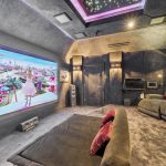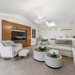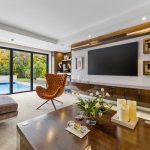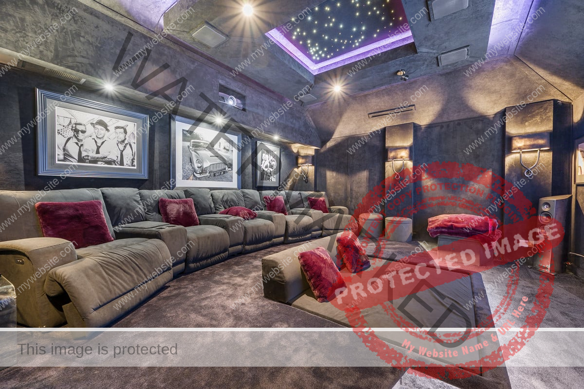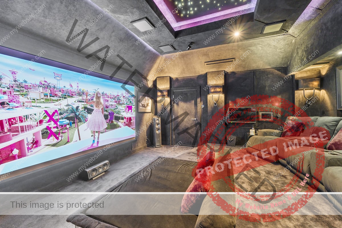 A real feature of this home is the luxury cinema room with hand stretched black faux suede wall and ceiling coverings, galaxy star ceiling panel, boutique cinema style lighting, five fully reclining chairs and a custom daybed.