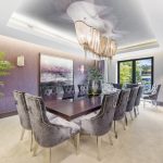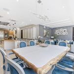 The dining room, continuing from the formal lounge, is an elegant and tranquil space which can comfortably seat sixteen, and can also be accessed from the kitchen via an electric pocket door.
