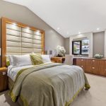 The Mark Wilkinson kitchen really is the heart of this home and features American black walnut units with polished stainless steel inlays and Silestone countertops. An impressive central island, set in cosmic black granite with breakfast bar, features a Gaggenau electric hob and built in chopping board. Included are high quality appliances; two Gaggenau ovens, a Sub-Zero fridge/freezer, two Fisher and Paykel drawer dishwashers and two boiling water taps. There is a concealed butler’s pantry providing additional carefully planned storage.
