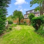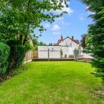 The property's grounds, approximately 0.2 acres, offer a private sanctuary with a six foot wall, mature trees, a decked seating area, a lawn and an ornamental pond with a bridge. Additional features include a detached double garage with an electric door and off street parking for several cars.