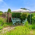 Green Ways enjoys very pleasant landscaped gardens. A paved area to the right of the property features four vegetable patches and can provide additional parking for cars. To the front of the property is a south facing garden which is well-screened with mature shrubbery. It features a path and a separate gate to the street, along with a patio area at the front of the house. The rear patio is designed with Indian stone and UPVC raised decking, featuring fixed wired lighting with a switch and additional outdoor sockets. installed just 2 years ago, it offers a very private area is ideal for alfresco dining. The garage is equipped with an electric shutter door and it also serves as a workshop with lighting and power sockets. A separate room with a window offers additional storage or office space potential, with the possibility to convert it into an annex and there is a door which leads to the side of the home.